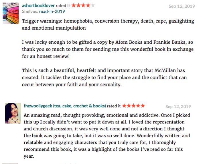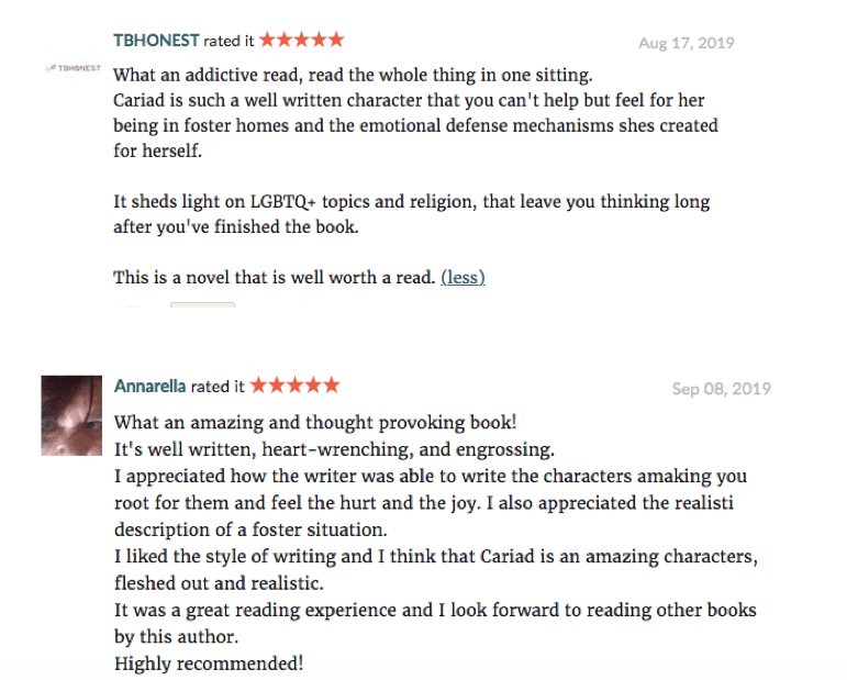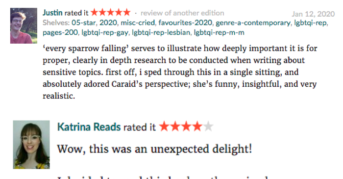 Wanted to post some screengrabbed mini-reviews here as not everyone’s comments end up on Goodreads and Amazon. These are some of my favourites. Thanks so much to everyone who has taken the time to pass on a kind comment. It means the world.